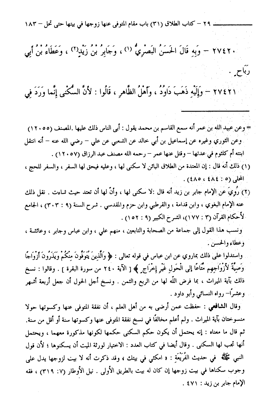 27421 - وَإِلَيْهِ ذَهَبَ دَاوُدُ، وَأَهْلُ الظَّاهِرِ، قَالُوا: لِأَنَّ السُّكْنَى إِنَّمَا وَرَدَ فِي