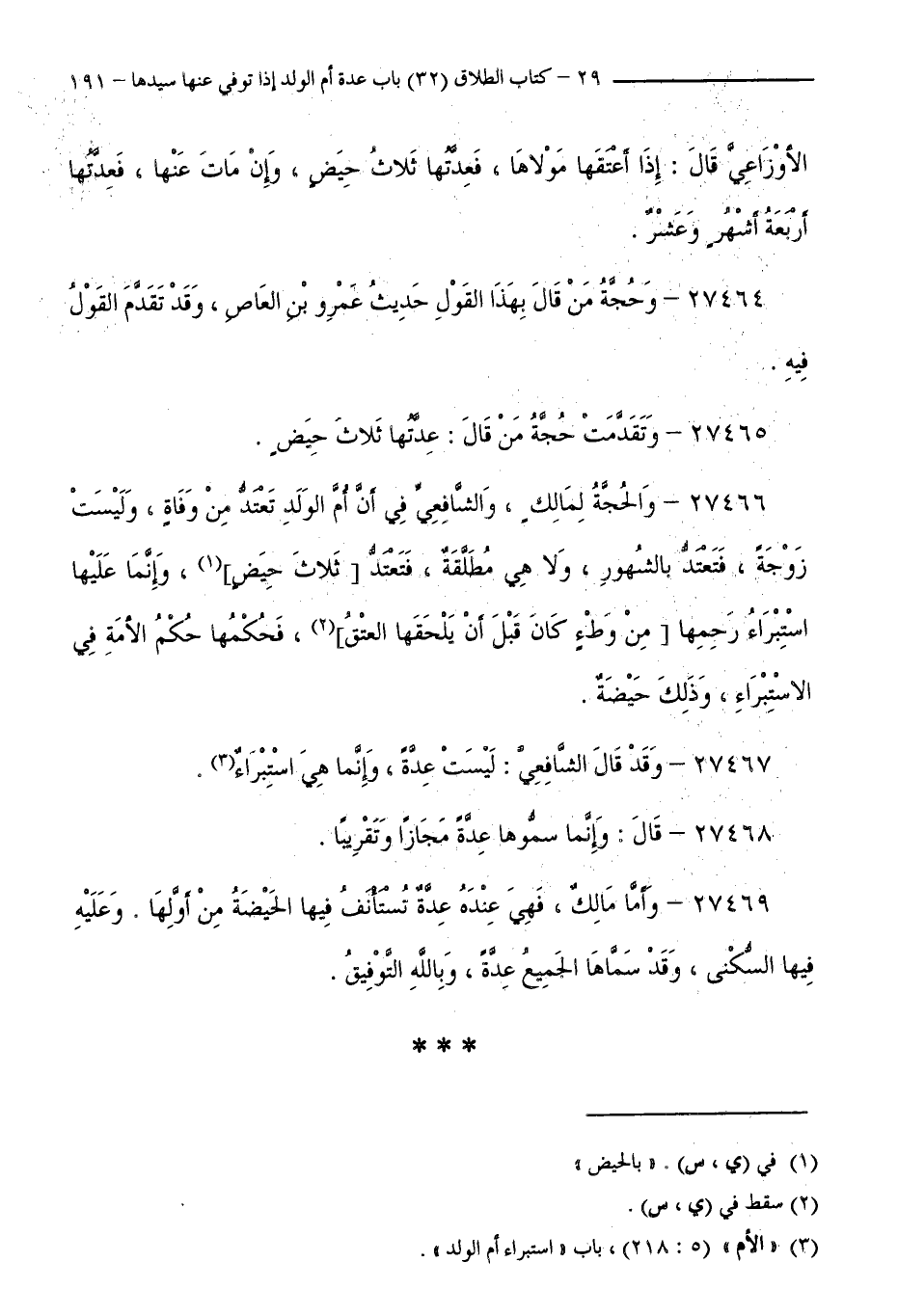 27465 - وَتَقَدَّمَتْ حُجَّةُ مَنْ قَالَ: عِدَّتُهَا ثَلَاثُ حِيَضٍ.