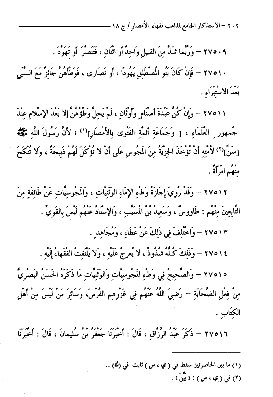 كتاب الاستذكار الجامع لمذاهب فقهاء الأمصار - ت: قلعجي (اسم الجزء: 18)