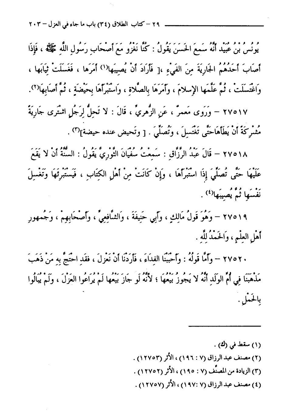27518 - قَالَ عَبْدُ الرَّزَّاقِ: سَمِعْتُ سُفْيَانَ الثَّوْرِيَّ يَقُولُ: السُّنَّةُ أَنْ لَا يَقَعَ عَلَيْهَا حَتَّى تُصَلِّيَ إِذَا اسْتَبْرَأَهَا، وَإِنْ كَانَتْ مِنْ أَهْلِ الْكِتَابِ، فَيَسْتَبْرِئُهَا، وَتَغْسِلُ نَفْسَهَا ثُمَّ يُصِيبُهَا.