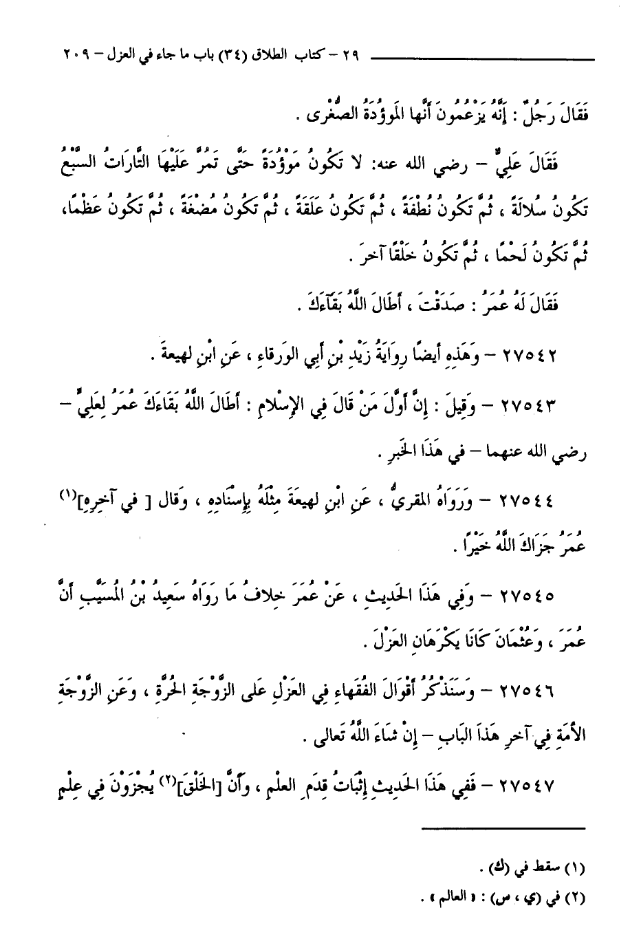 27546 - وَسَنَذْكُرُ أَقْوَالَ الْفُقَهَاءِ فِي الْعَزْلِ عَلَى الزَّوْجَةِ الْحُرَّةِ، وَعَنِ الزَّوْجَةِ الْأَمَةِ فِي آخِرِ هَذَا الْبَابِ - إِنْ شَاءَ اللَّهُ تَعَالَى.