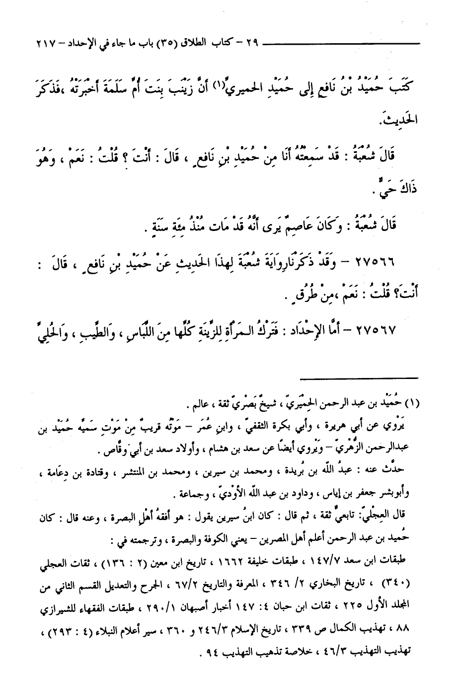 27566 - وَقَدْ ذَكَرْنَا رِوَايَةَ شُعْبَةَ لِهَذَا الْحَدِيثِ عَنْ حُمَيْدِ بْنِ نَافِعٍ، قَالَ: أَنْتَ ؟ قُلْتُ: نَعَمْ، وَمِنْ طُرُقٍ.