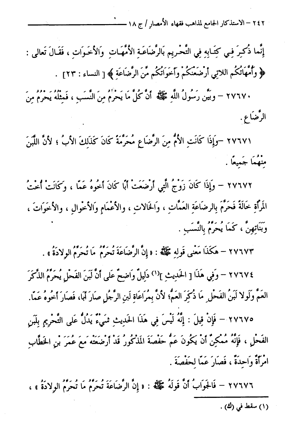 كتاب الاستذكار الجامع لمذاهب فقهاء الأمصار - ت: قلعجي (اسم الجزء: 18)