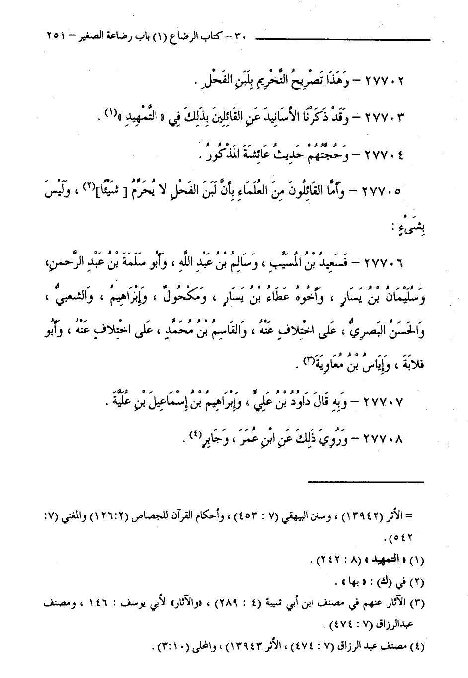 27705 - وَأَمَّا الْقَائِلُونَ مِنَ الْعُلَمَاءِ بِأَنَّ لَبَنَ الْفَحْلِ لَا يُحَرِّمُ شَيْئًا، وَلَيْسَ بِشَيْءٍ.