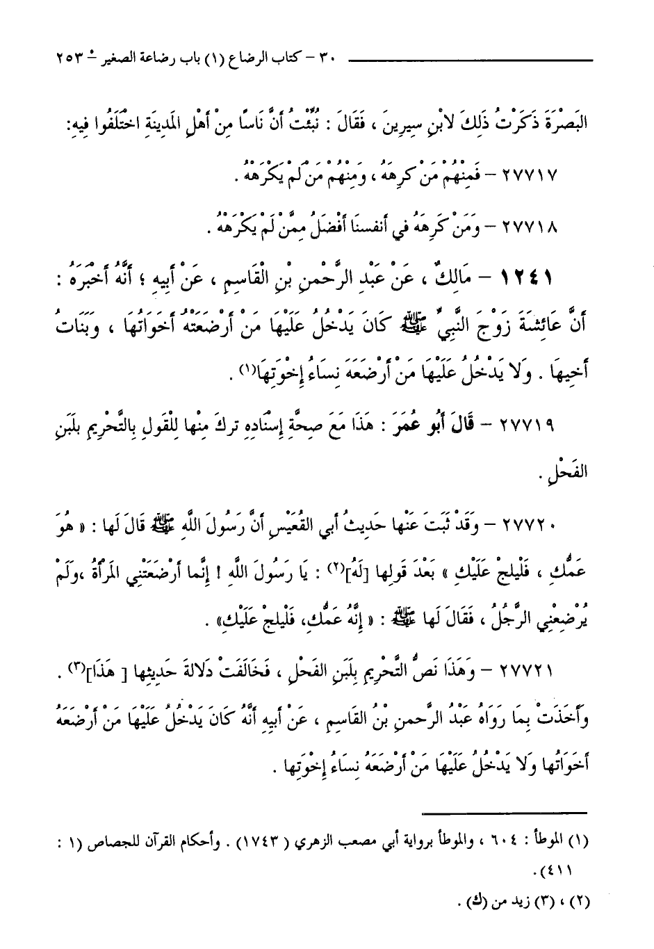 27719 - قَالَ أَبُو عُمَرَ: هَذَا مَعَ صِحَّةِ إِسْنَادِهِ تُرِكَ مِنْهَا لِلْقَوْلِ بِالتَّحْرِيمِ بِلَبَنِ الْفَحْلِ.