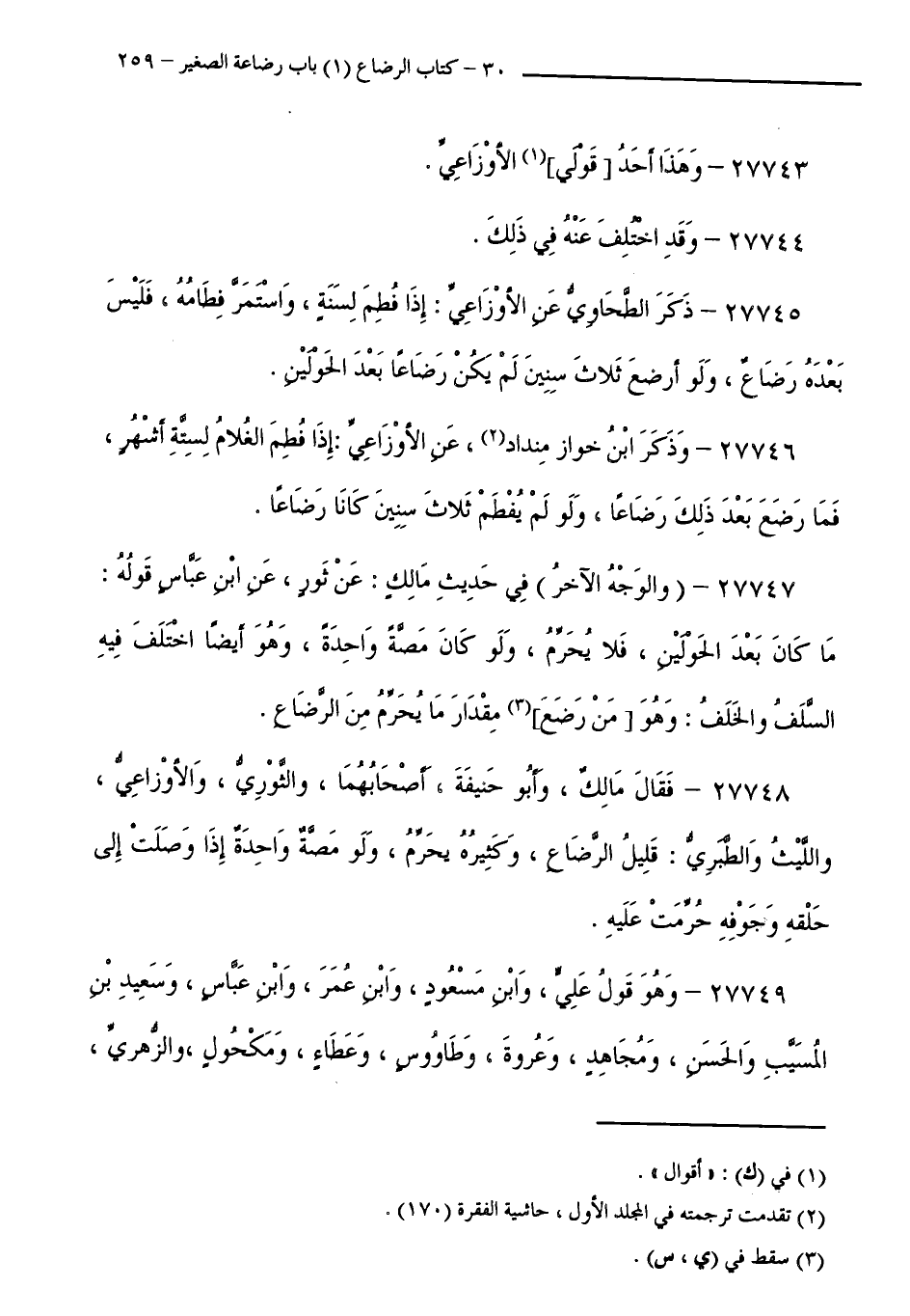 27745 - ذَكَرَ الطَّحَاوِيُّ عَنِ الْأَوْزَاعِيِّ: إِذَا فُطِمَ لِسَنَةٍ، وَاسْتَمَرَّ فِطَامُهُ، فَلَيْسَ بَعْدَهُ رَضَاعٌ، وَلَوْ أُرْضِعَ ثَلَاثَ سِنِينَ لَمْ يَكُنْ رَضَاعًا بَعْدَ الْحَوْلَيْنِ.