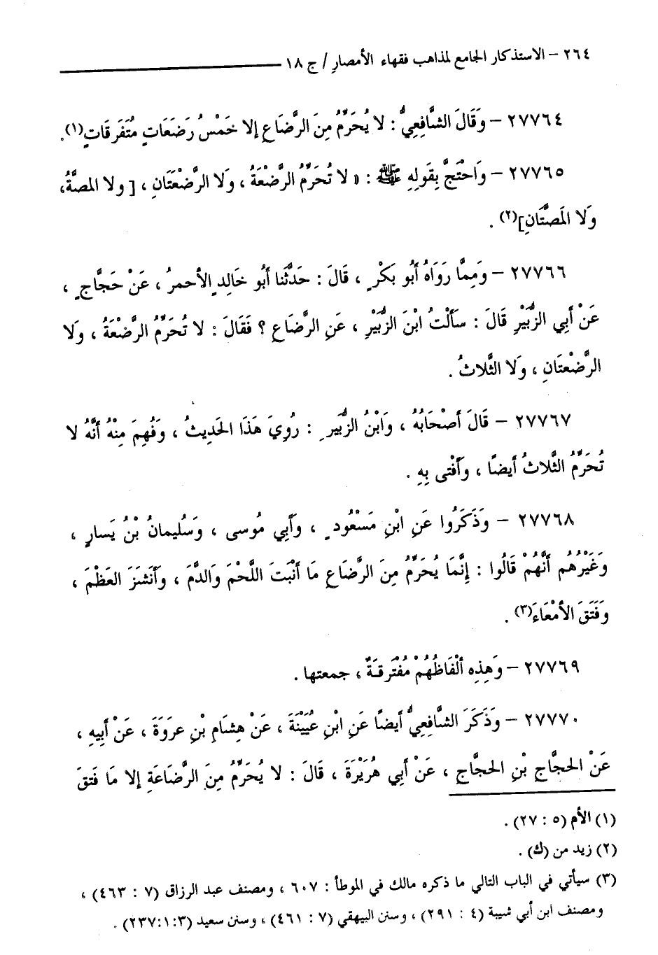 27770 - وَذَكَرَ الشَّافِعِيُّ أَيْضًا عَنِ ابْنِ عُيَيْنَةَ، عَنْ هِشَامِ بْنِ عُرْوَةَ، عَنْ أَبِيهِ، عَنِ الْحَجَّاجِ بْنِ الْحَجَّاجِ، عَنْ أَبِي هُرَيْرَةَ، قَالَ: لَا يُحَرِّمُ مِنَ الرَّضَاعَةِ إِلَّا مَا فَتَقَ