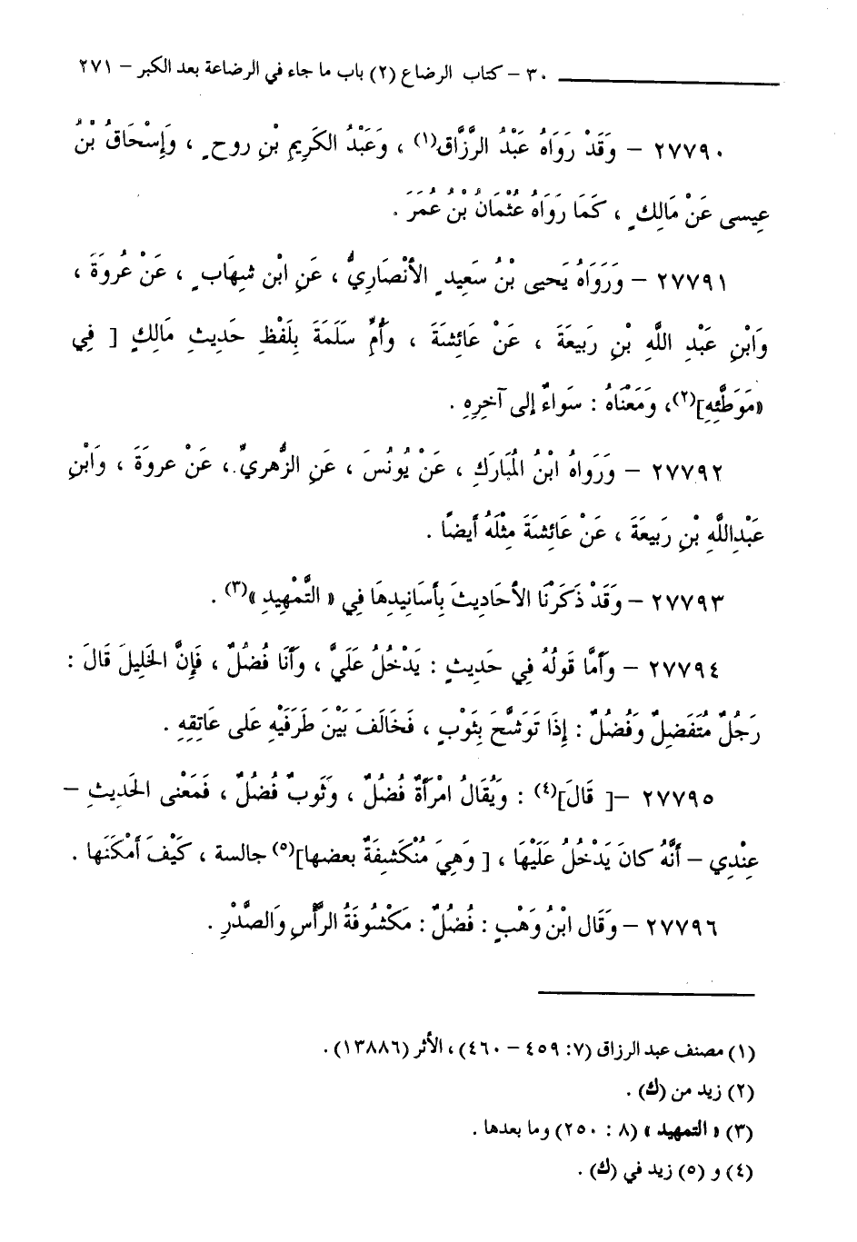 27790 - وَقَدْ رَوَاهُ عَبْدُ الرَّزَّاقِ، وَعَبْدُ الْكَرِيمِ بْنُ رَوْحٍ، وَإِسْحَاقُ بْنُ عِيسَى، عَنْ مَالِكٍ، كَمَا رَوَاهُ عُثْمَانُ بْنُ عُمَرَ.