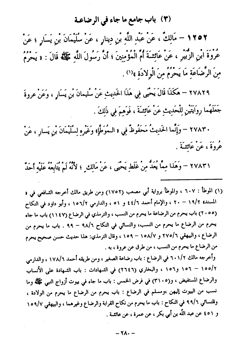 1252 - مَالِكٌ، عَنْ عَبْدِ اللَّهِ بْنِ دِينَارٍ، عَنْ سُلَيْمَانَ بْنِ يَسَارٍ ; عَنْ عُرْوَةَ بْنِ الزُّبَيْرِ، عَنْ عَائِشَةَ أُمِّ الْمُؤْمِنِينَ ; أَنَّ رَسُولَ اللَّهِ - صَلَّى اللَّهُ عَلَيْهِ وَسَلَّمَ - قَالَ: "يَحْرُمُ مِنَ الرَّضَاعَةِ مَا يَحْرُمُ مِنَ الْوِلَادَةِ ".