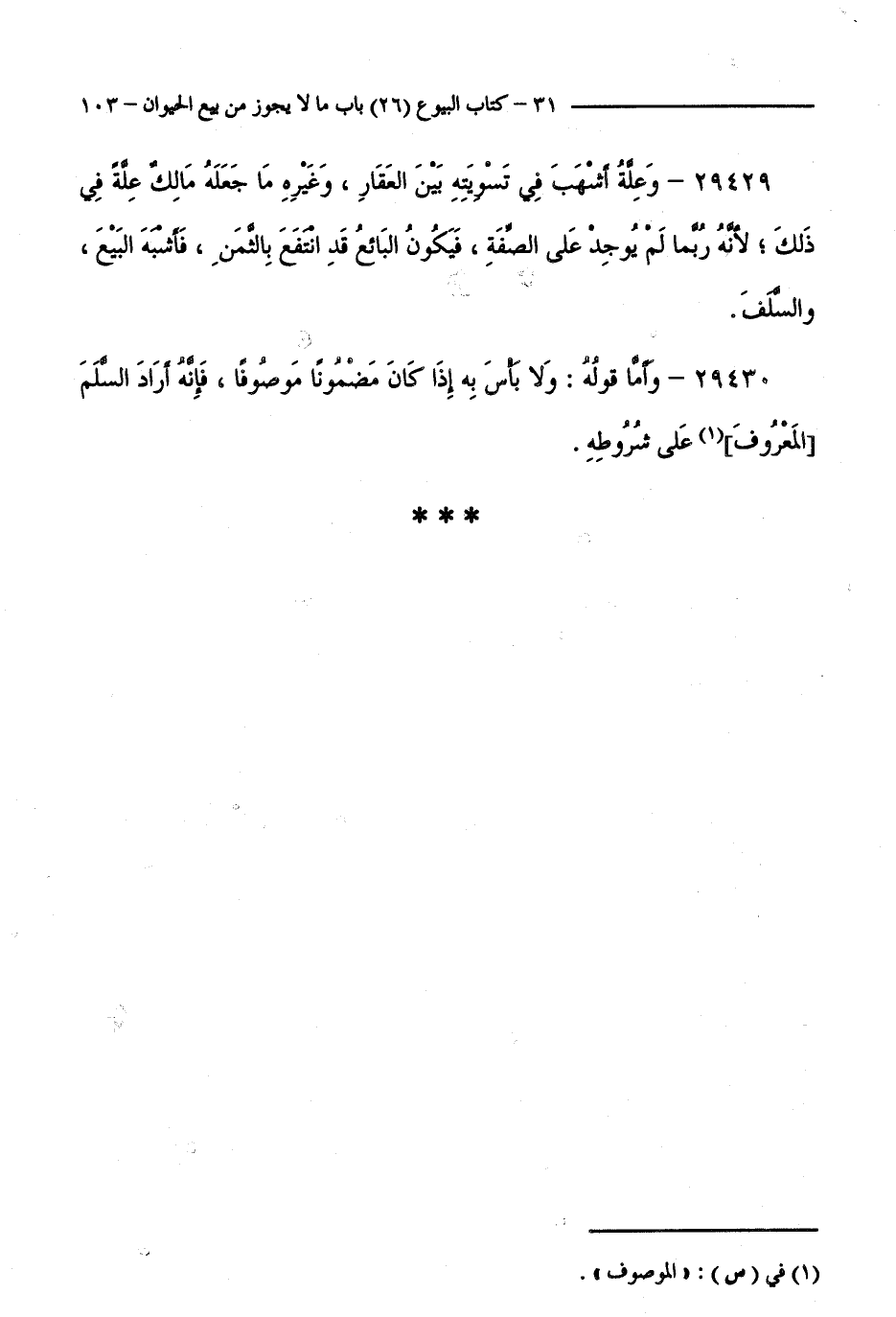 29430 - وَأَمَّا قَوْلُهُ: وَلَا بَأْسَ بِهِ إِذَا كَانَ مَضْمُونًا مَوْصُوفًا، فَإِنَّهُ أَرَادَ السَّلَمَ الْمَعْرُوفَ عَلَى شُرُوطِهِ.