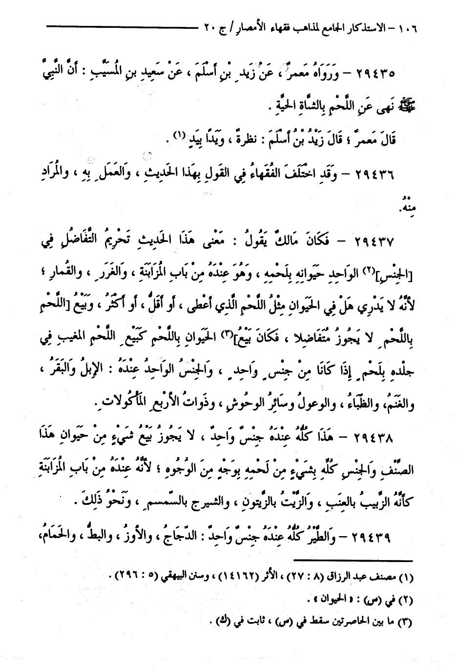 كتاب الاستذكار الجامع لمذاهب فقهاء الأمصار - ت: قلعجي (اسم الجزء: 20)