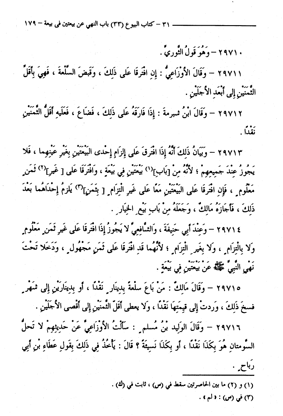 29711 - وَقَالَ الْأَوْزَاعِيُّ: إِنِ افْتَرَقَا عَلَى ذَلِكَ، وَقَبَضَ السِّلْعَةَ، فَهِيَ بِأَقَلِّ الثَّمَنَيْنِ إِلَى أَبْعَدِ الْأَجَلَيْنِ.