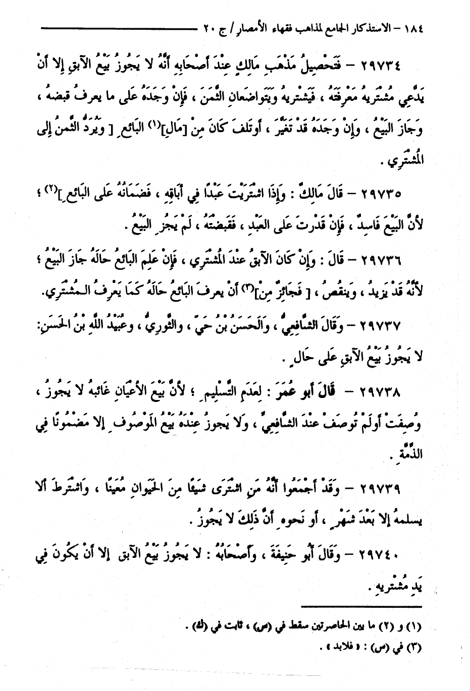 كتاب الاستذكار الجامع لمذاهب فقهاء الأمصار - ت: قلعجي (اسم الجزء: 20)