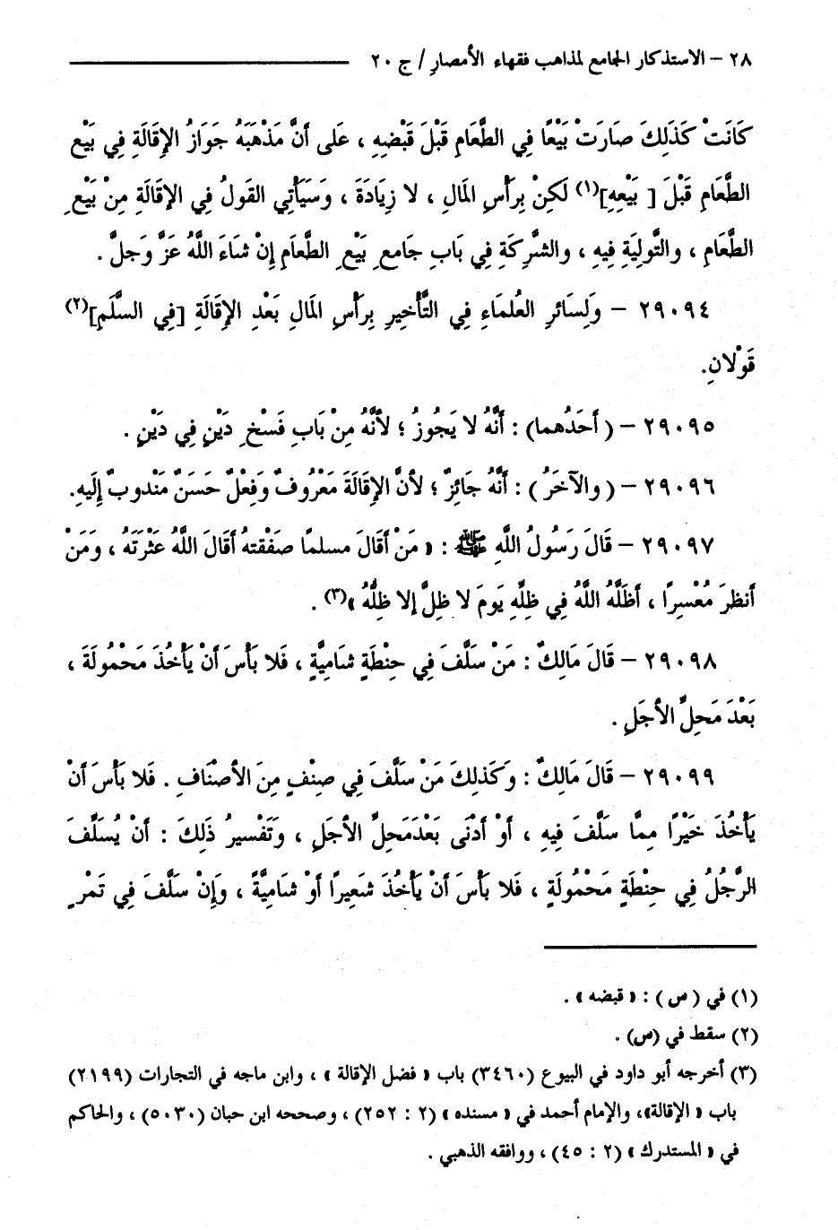 29094 - وَلِسَائِرِ الْعُلَمَاءِ فِي التَّأْخِيرِ بِرَأْسِ الْمَالِ بَعْدَ الْإِقَالَةِ فِي السَّلَمِ قَوْلَانِ.