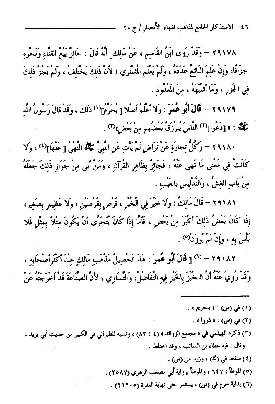 كتاب الاستذكار الجامع لمذاهب فقهاء الأمصار - ت: قلعجي (اسم الجزء: 20)