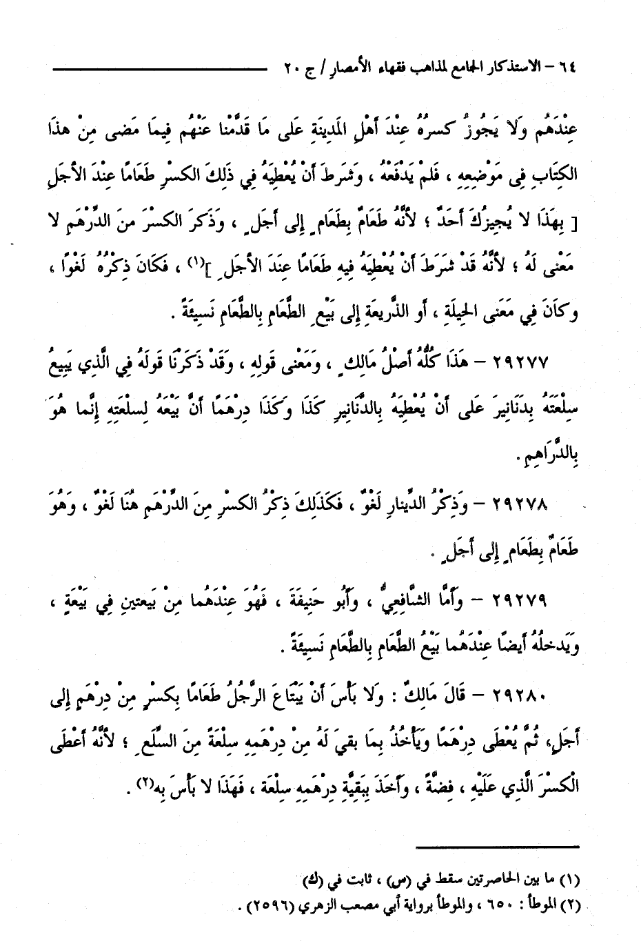 كتاب الاستذكار الجامع لمذاهب فقهاء الأمصار - ت: قلعجي (اسم الجزء: 20)