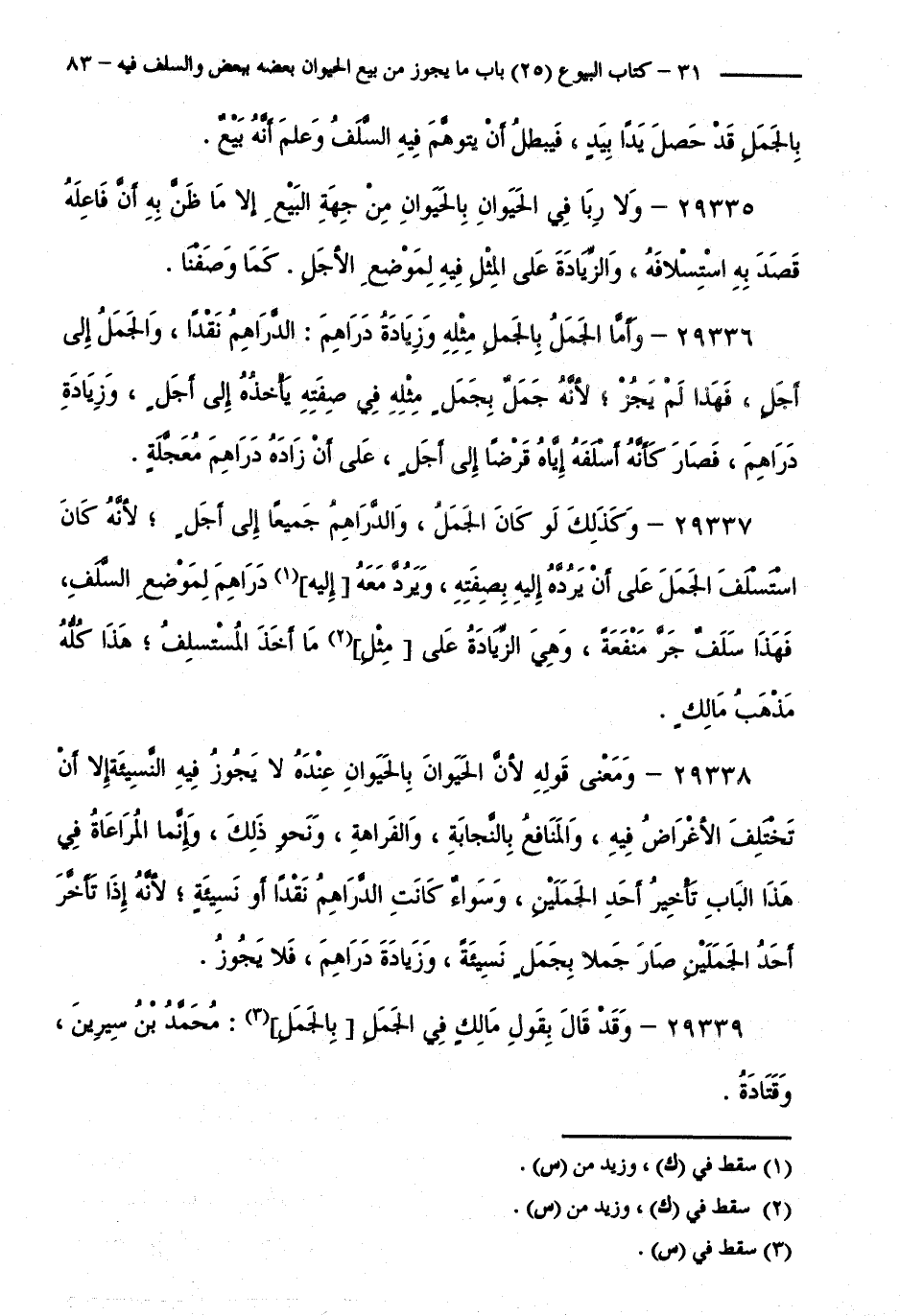 29339 - وَقَدْ قَالَ بِقَوْلِ مَالِكٍ فِي الْجَمَلِ بِالْجَمَلِ: مُحَمَّدُ بْنُ سِيرِينَ، وَقَتَادَةُ.