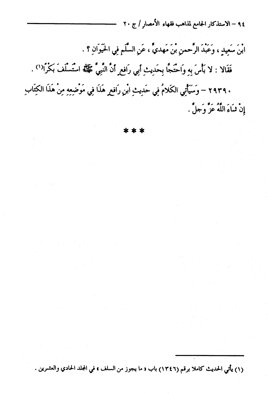 بْنَ سَعِيدٍ، وَعَبْدَ الرَّحْمَنِ بْنَ مَهْدِيٍّ، عَنِ السَّلَمِ فِي الْحَيَوَانِ،
