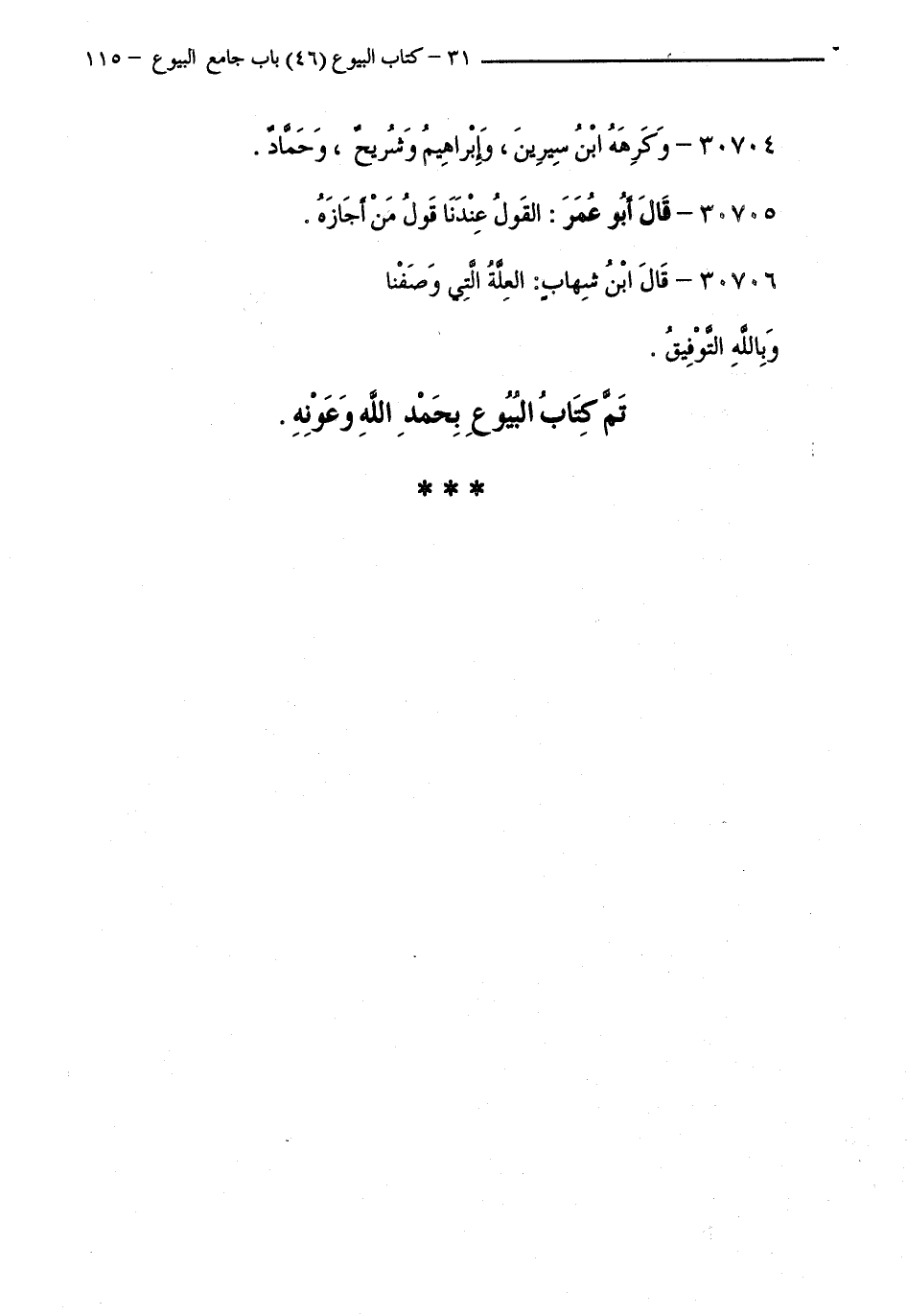 تَمَّ كِتَابُ الْبُيُوعِ بِحَمْدِ اللَّهِ وَعَوْنِهِ.