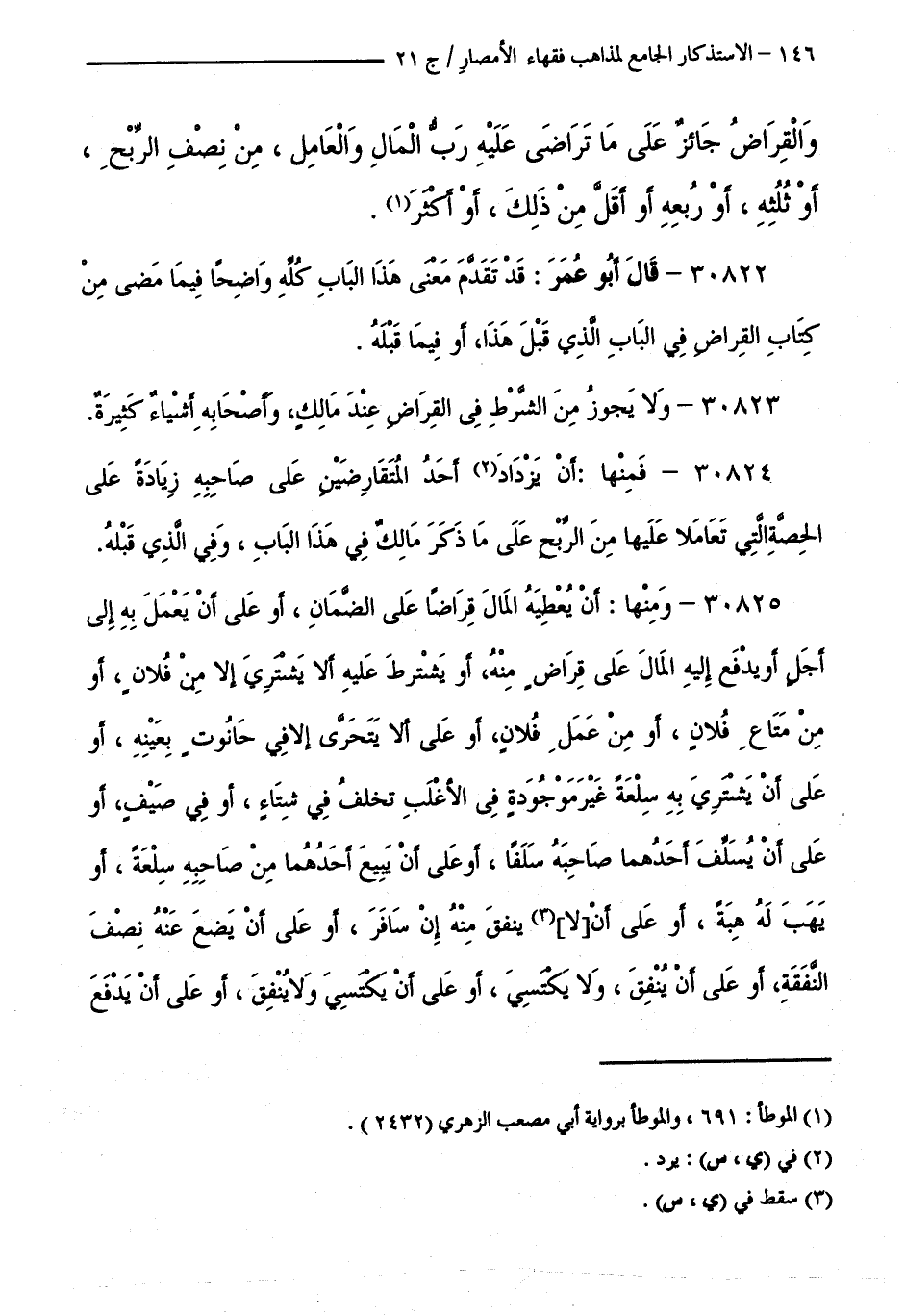 30824 - فَمِنْهَا: أَنْ يَزْدَادَ أَحَدُ الْمُتَقَارِضَيْنِ عَلَى صَاحِبِهِ زِيَادَةً عَلَى الْحِصَّةِ الَّتِي تَعَامَلَا عَلَيْهَا مِنَ الرِّبْحِ عَلَى مَا ذَكَرَ مَالِكٌ فِي هَذَا الْبَابِ، وَفِي الَّذِي قَبْلَهُ.