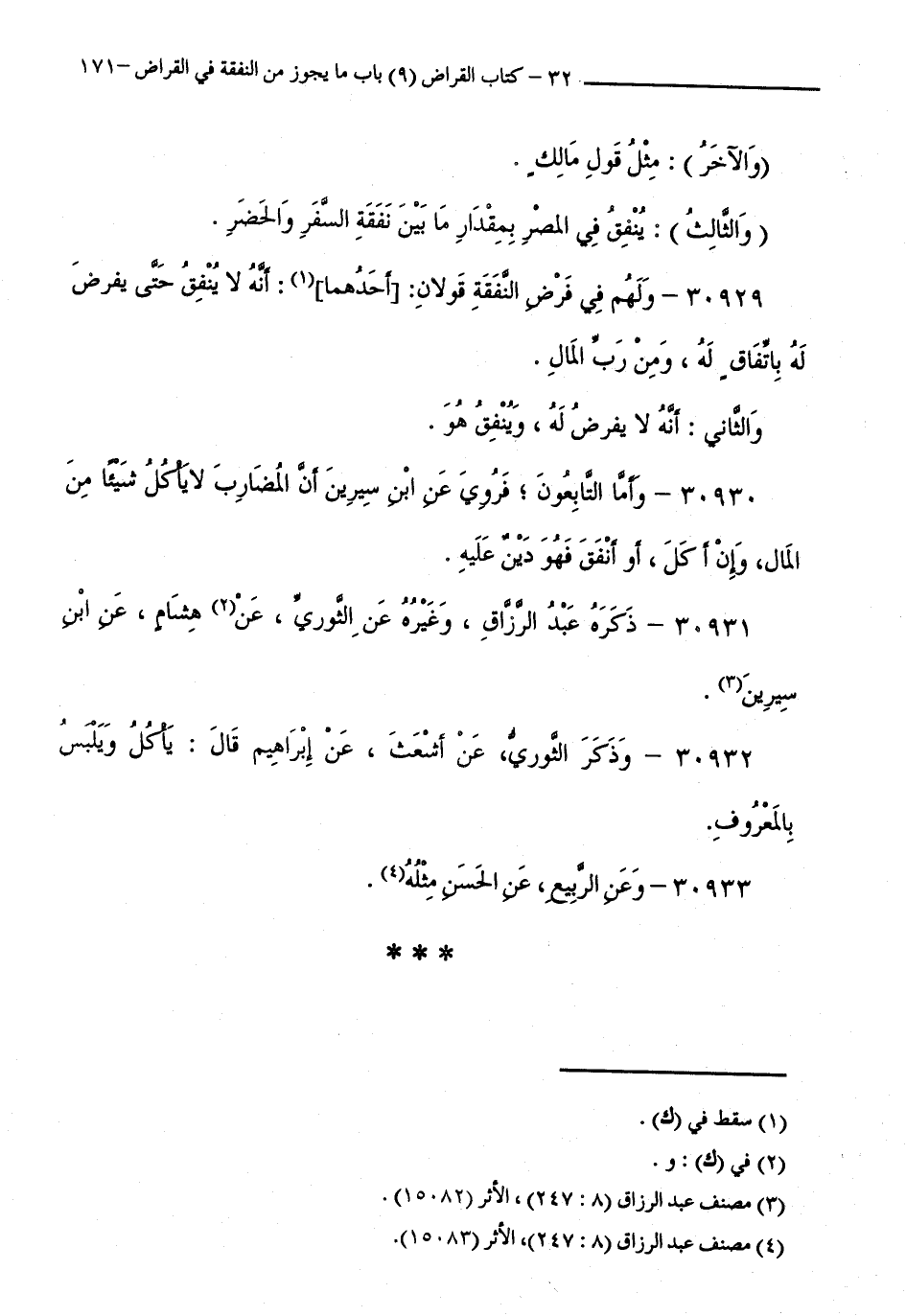 30931 - ذَكَرَهُ عَبْدُ الرَّزَّاقِ، وَغَيْرُهُ عَنِ الثَّوْرِيِّ، عَنْ هِشَامٍ، عَنِ ابْنِ سِيرِينَ.