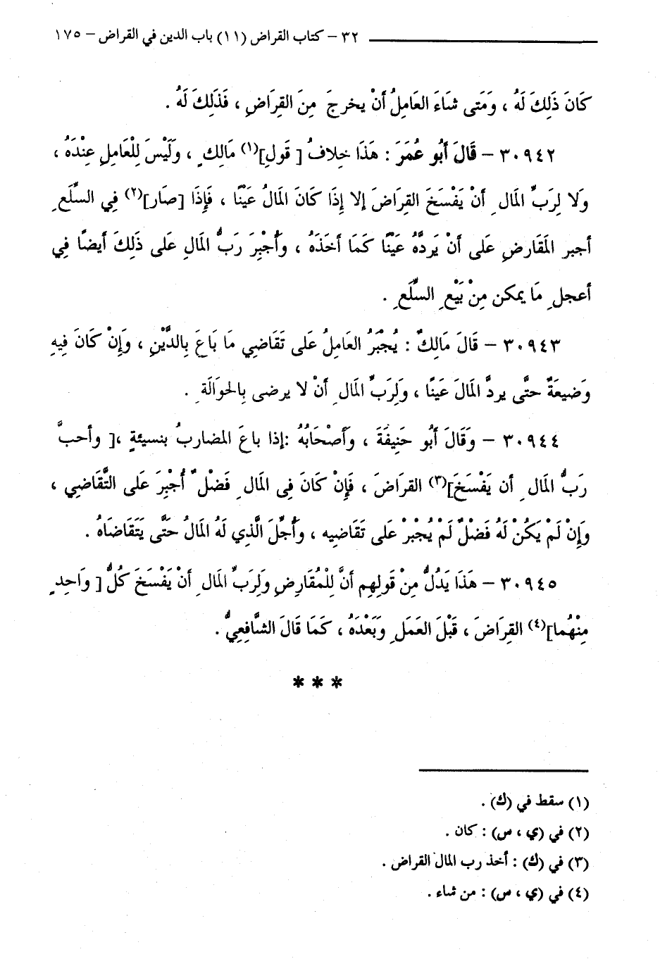 30945 - هَذَا يَدُلُّ مِنْ قَوْلِهِمْ أَنَّ لِلْمُقَارِضِ وَلِرَبِّ الْمَالِ أَنْ يَفْسَخَ كُلُّ وَاحِدٍ مِنْهُمَا الْقِرَاضَ، قَبْلَ الْعَمَلِ وَبَعْدَهُ، كَمَا قَالَ الشَّافِعِيُّ.