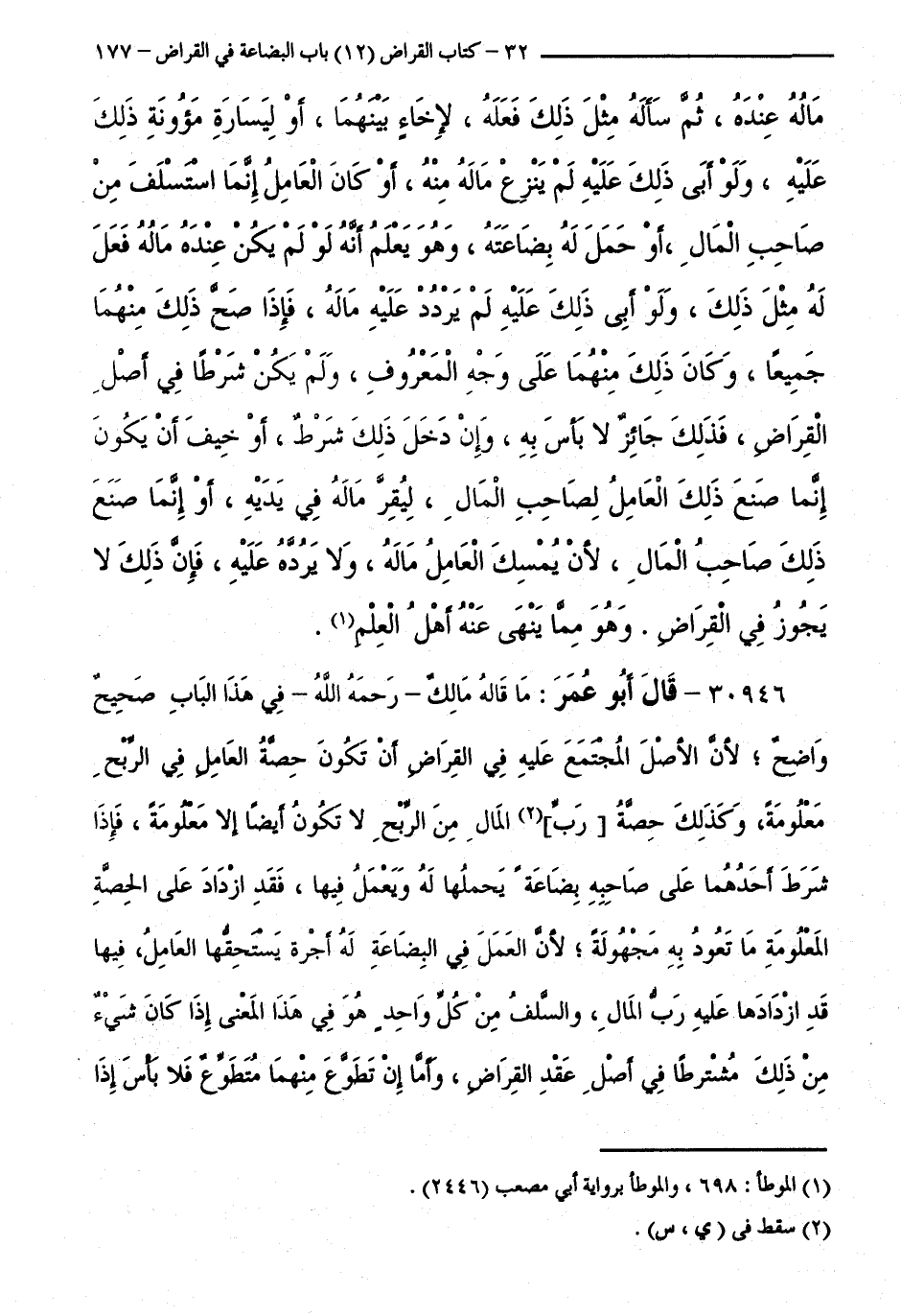 30946 - قَالَ أَبُو عُمَرَ: مَا قَالَهُ مَالِكٌ - رَحِمَهُ اللَّهُ - فِي هَذَا الْبَابِ صَحِيحٌ وَاضِحٌ ; لِأَنَّ الْأَصْلَ الْمُجْتَمَعَ عَلَيْهِ فِي الْقِرَاضِ أَنْ تَكُونَ حِصَّةُ الْعَامِلِ فِي الرِّبْحِ مَعْلُومَةً، وَكَذَلِكَ حِصَّةُ رَبِّ الْمَالِ مِنَ الرِّبْحِ لَا تَكُونُ أَيْضًا إِلَّا مَعْلُومَةً، فَإِذَا شَرَطَ أَحَدُهُمَا عَلَى صَاحِبِهِ بِضَاعَةً يَحْمِلُهَا لَهُ وَيَعْمَلُ فِيهَا، فَقَدِ ازْدَادَ عَلَى الْحِصَّةِ الْمَعْلُومَةِ مَا تَعُودُ بِهِ مَجْهُولَةً ; لِأَنَّ الْعَمَلَ فِي الْبِضَاعَةِ لَهُ أُجْرَةٌ يَسْتَحِقُّهَا الْعَامِلُ، فِيهَا قَدِ ازْدَادَهَا عَلَيْهِ رَبُّ الْمَالِ، وَالسَّلَفُ مِنْ كُلِّ وَاحِدٍ هُوَ فِي هَذَا الْمَعْنَى إِذَا كَانَ شَيْءٌ مِنْ ذَلِكَ مُشْتَرَطًا فِي أَصْلِ عَقْدِ الْقِرَاضِ، وَأَمَّا إِنْ تَطَوَّعَ مِنْهُمَا مُتَطَوِّعٌ فَلَا بَأْسَ إِذَا