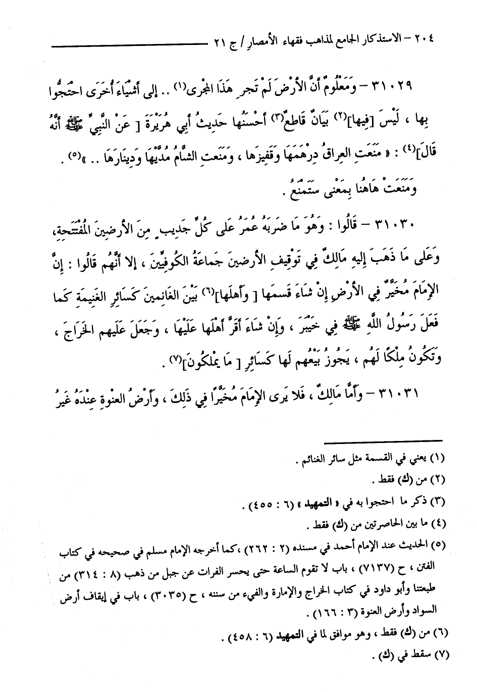كتاب الاستذكار الجامع لمذاهب فقهاء الأمصار - ت: قلعجي (اسم الجزء: 21)