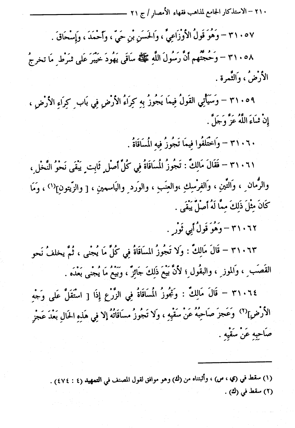 31058 - وَحُجَّتُهُمْأَنَّ رَسُولَ اللَّهِ - صَلَّى اللَّهُ عَلَيْهِ وَسَلَّمَ - سَاقَى يَهُودُ خَيْبَرَ عَلَى شَرْطِ مَا تُخْرِجُ الْأَرْضُ وَالثَّمَرَةِ.