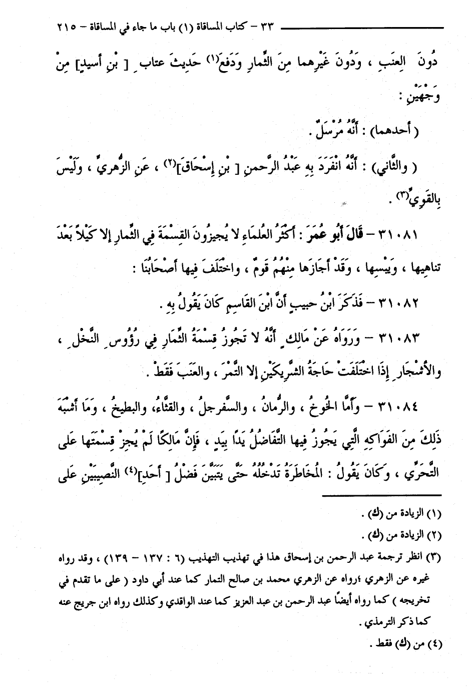 31081 - قَالَ أَبُو عُمَرَ: أَكْثَرُ الْعُلَمَاءِ لَا يُجِيزُونَ الْقِسْمَةَ فِي الثِّمَارِ إِلَّا كَيْلَا بَعْدَ تَنَاهِيهَا، وَيَبْسِهَا، وَقَدْ أَجَازَهَا مِنْهُمْ قَوْمٌ، وَاخْتَلَفَ فِيهَا أَصْحَابُنَا: