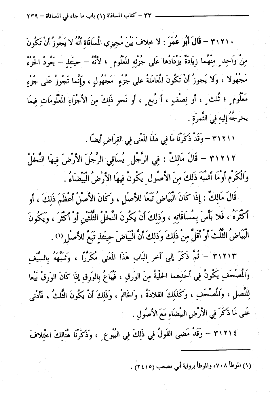 31212 - قَالَ مَالِكٌ: فِي الرَّجُلِ يُسَاقِي الرَّجُلَ الْأَرْضَ فِيهَا النَّخْلُ وَالْكَرْمُ أَوْ مَا أَشْبَهَ ذَلِكَ مِنَ الْأُصُولِ يَكُونُ فِيهَا الْأَرْضُ الْبَيْضَاءُ.