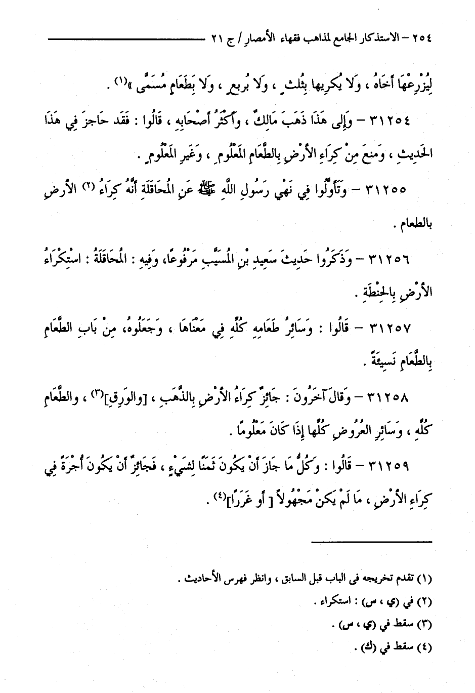 31254 - وَإِلَى هَذَا ذَهَبَ مَالِكٌ، وَأَكْثَرُ أَصْحَابِهِ، قَالُوا: فَقَدْ حَاجَزَ فِي هَذَا الْحَدِيثِ، وَمَنَعَ مَنْ كِرَاءِ الْأَرْضِ بِالطَّعَامِ الْمَعْلُومِ، وَغَيْرِ الْمَعْلُومِ.