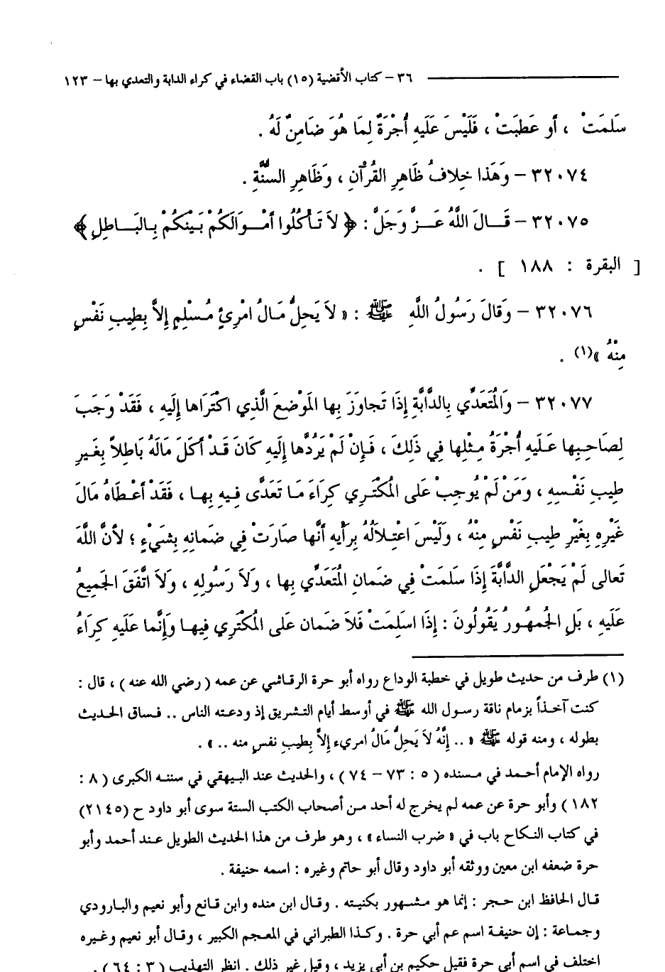 32076 -وَقَالَ رَسُولُ اللَّهِ - صَلَّى اللَّهُ عَلَيْهِ وَسَلَّمَ -: لَا يَحِلُّ مَالُ امْرِئٍ مُسْلِمٍ إِلَّا بِطِيبٍ نَفْسٍ مِنْهُ.