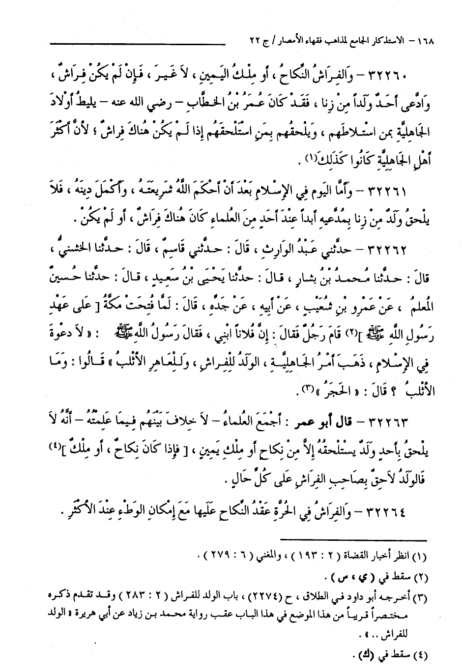 32263 - قَالَ أَبُو عُمَرَ: أَجْمَعَ الْعُلَمَاءُ - لَا خِلَافَ بَيْنَهُمْ فِيمَا عَلِمْتُهُ - أَنَّهُ لَا يَلْحَقُ بِأَحَدٍ وَلَدٌ يَسْتَلْحِقُهُ إِلَّا مِنْ نِكَاحٍ أَوْ مِلْكِ يَمِينٍ، فَإِذَا كَانَ نِكَاحٌ، أَوْ مِلْكٌ فَالْوَلَدُ لَاحِقٌ بِصَاحِبِ الْفِرَاشِ عَلَى كُلِّ حَالٍ.