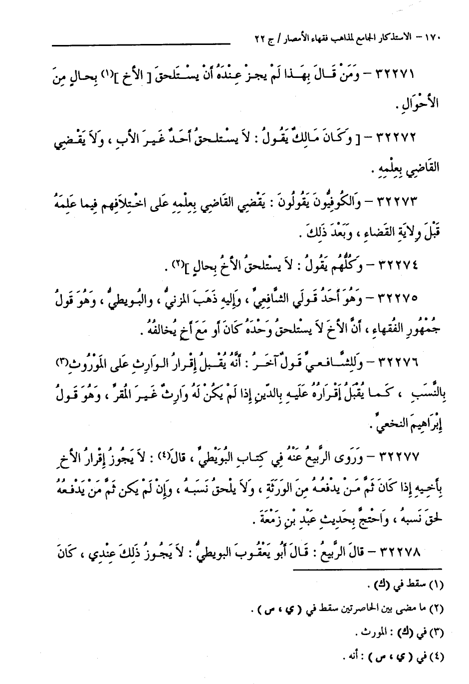 32274 - وَكُلُّهُمْ يَقُولُ: لَا يَسْتَلْحِقُ الْأَخُ بِحَالٍ.