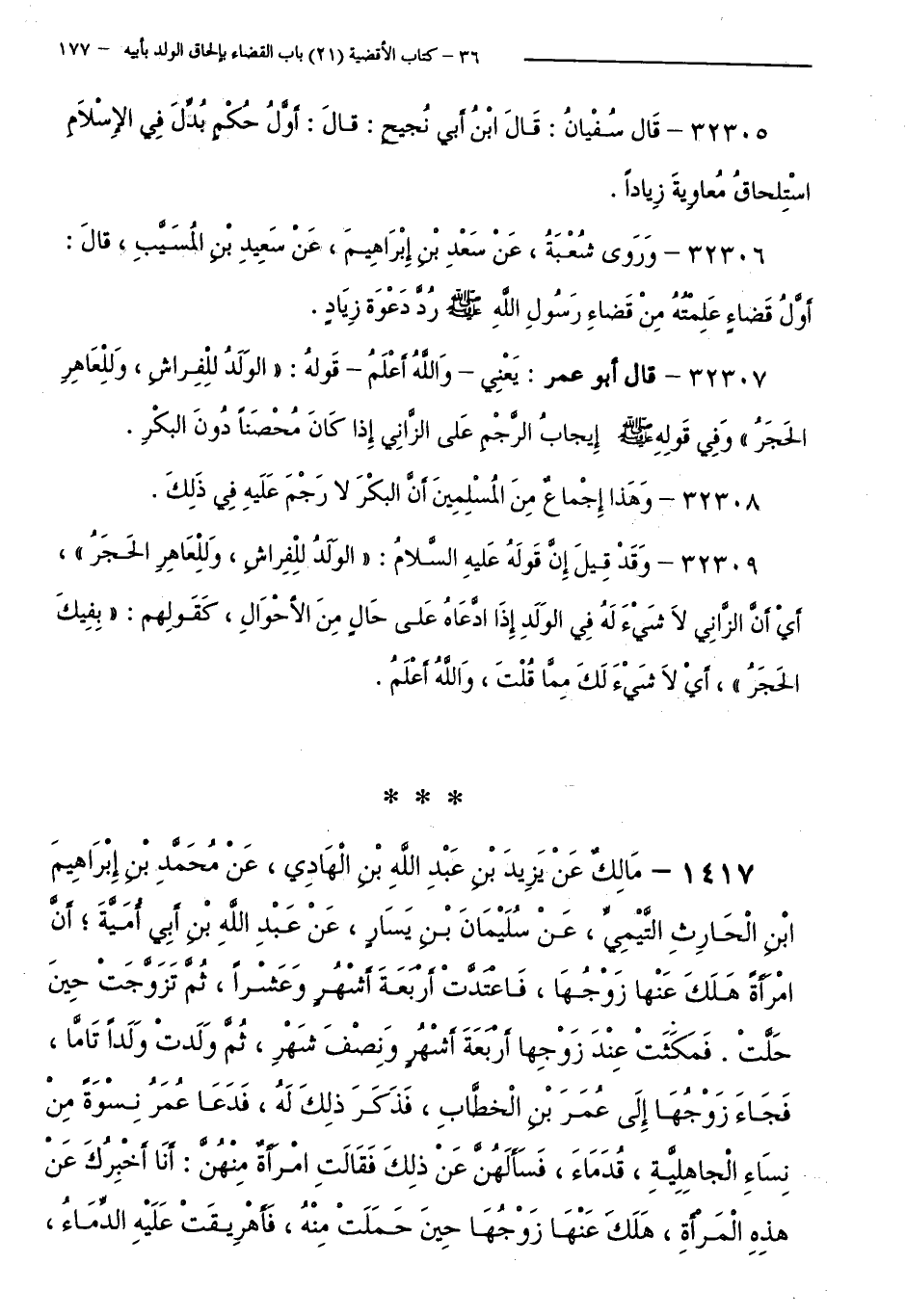 32307 - قَالَ أَبُو عُمَرَ: يَعْنِي - وَاللَّهُ أَعْلَمُ - قَوْلُهُ: وَالْوَلَدُ لِلْفِرَاشِ، وَلِلْعَاهِرِ الْحَجَرُ وَفِي قَوْلِهِ - صَلَّى اللَّهُ عَلَيْهِ وَسَلَّمَ - إِيجَابُ الرَّجْمِ عَلَى الزَّانِي إِذَا كَانَ مُحْصَنًا دُونَ الْبِكْرِ.