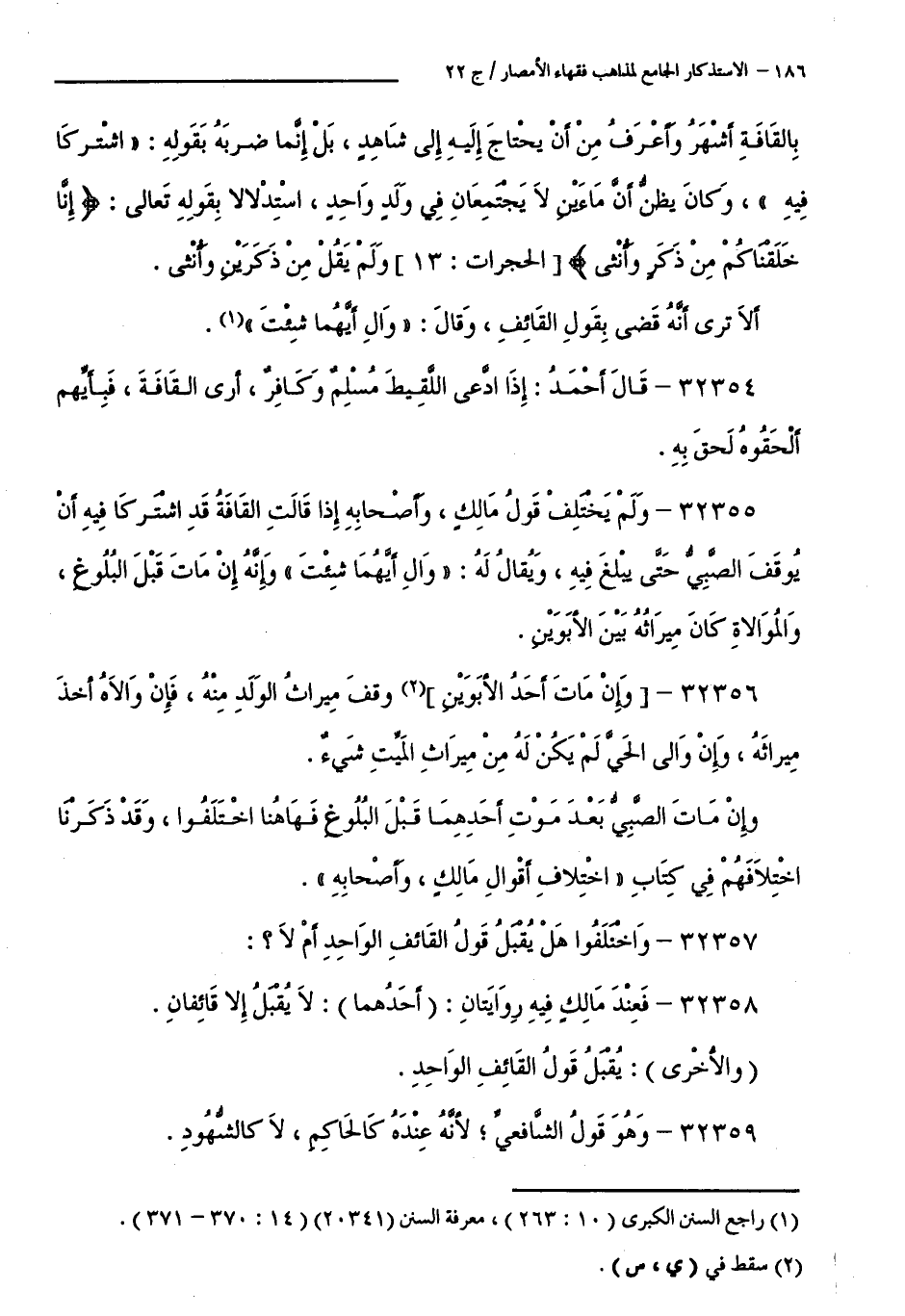 32357 - وَاخْتَلَفُوا هَلْ يُقْبَلُ قَوْلُ الْقَائِفِ الْوَاحِدِ أَمْ لَا ؟