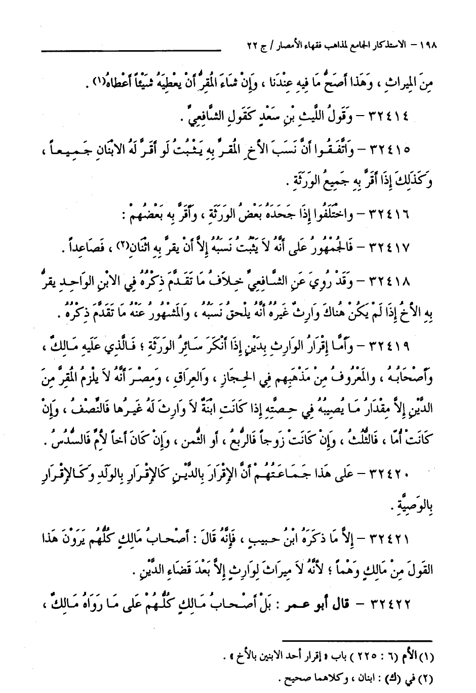 32420 - عَلَى هَذَا جَمَاعَتُهُمْ أَنَّ الْإِقْرَارَ بِالدَّيْنِ كَالْإِقْرَارِ بِالْوَلَدِ وَكَالْإِقْرَارِ بِالْوَصِيَّةِ.