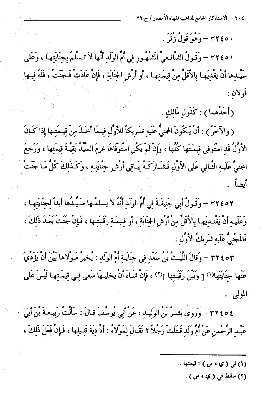 كتاب الاستذكار الجامع لمذاهب فقهاء الأمصار - ت: قلعجي (اسم الجزء: 22)