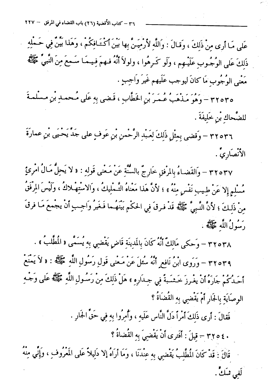 32535 - وَهُوَ مَذْهَبُ عُمَرَ بْنِ الْخَطَّابِ ; قَضَى بِهِ عَلَى مُحَمَّدِ بْنِ مَسْلَمَةَ لِلضَّحَّاكِ بْنِ خَلِيفَةَ.