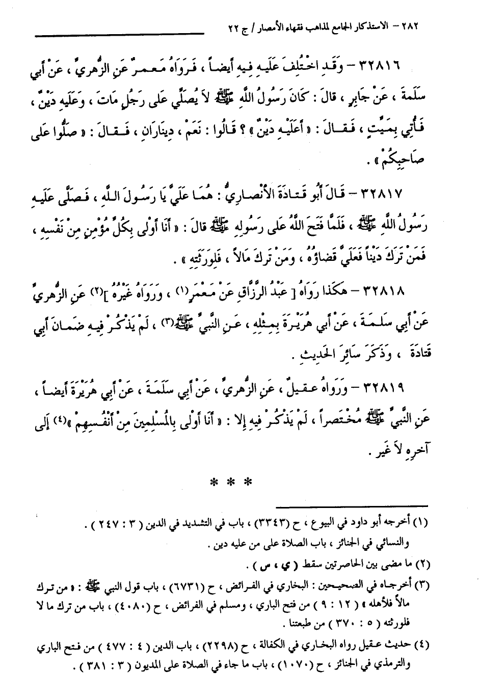 كتاب الاستذكار الجامع لمذاهب فقهاء الأمصار - ت: قلعجي (اسم الجزء: 22)
