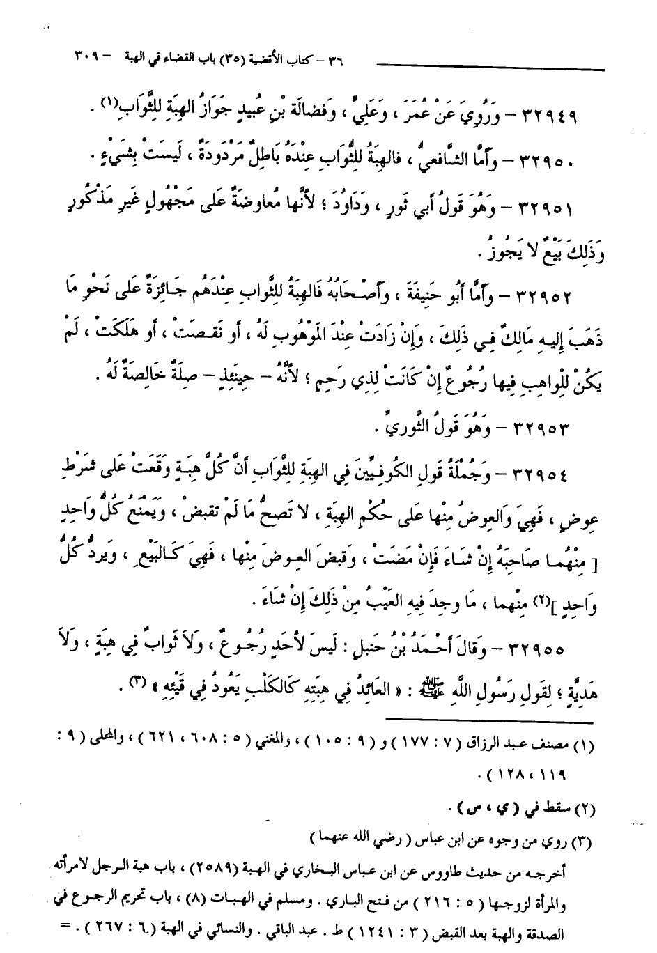 32949 - وَرُوِيَ عَنْ عُمَرَ، وَعَلِيٍّ، وَفُضَالَةَ بْنِ عُبَيْدٍ جَوَازُ الْهِبَةِ لِلثَّوَابِ.
