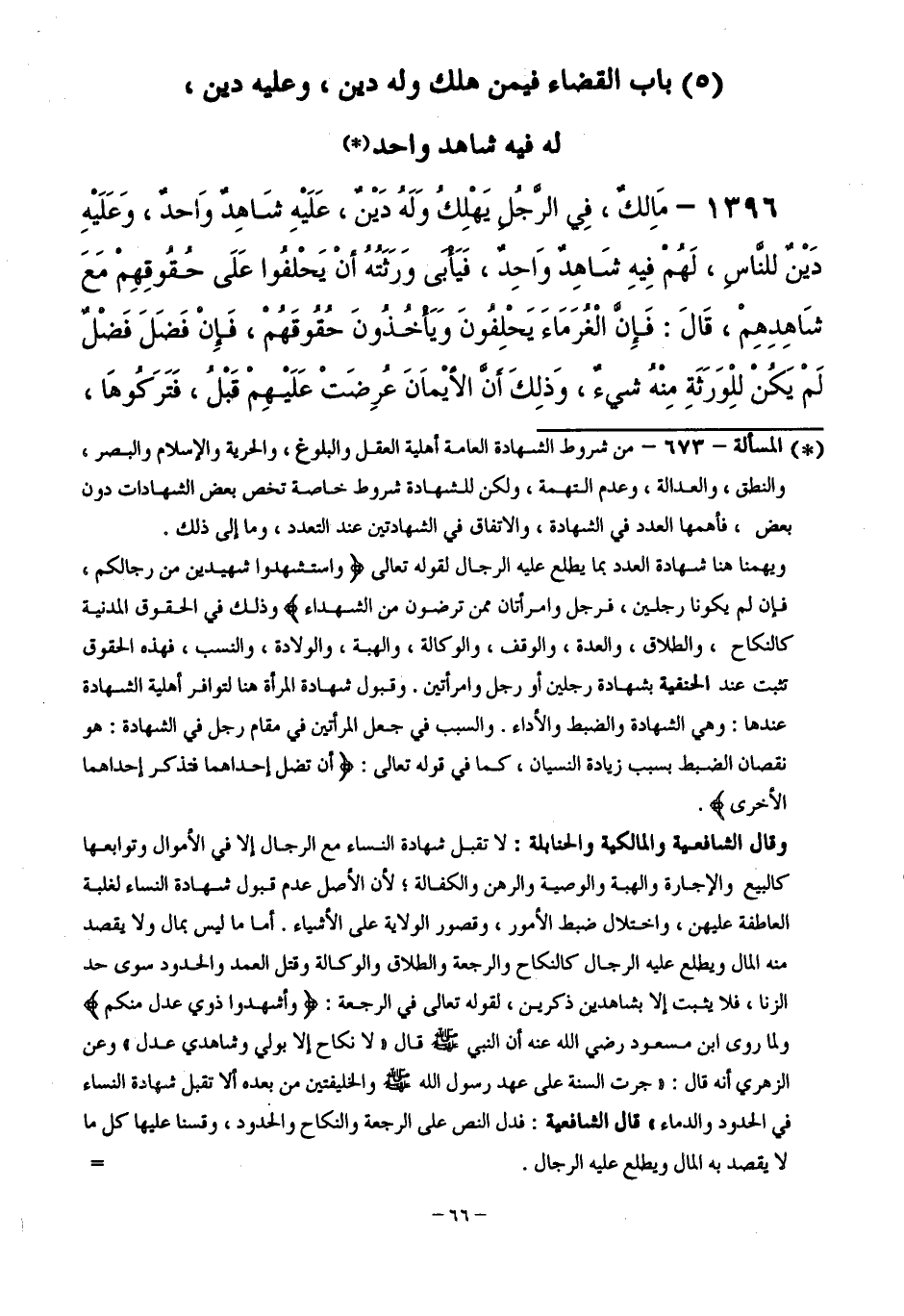( 5 ) بَابُ الْقَضَاءِ فِيمَنْ هَلَكَ وَلَهُ دَيْنٌ، وَعَلَيْهِ دَيْنٌ، لَهُ فِيهِ شَاهِدٌ وَاحِدٌ
