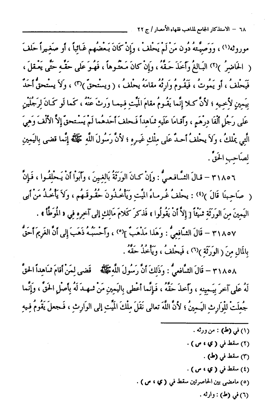 31856 - قَالَ الشَّافِعِيُّ: وَإِنْ كَانَ الْوَرَثَةُ بَالِغِينَ، وَأَبَوْا أَنْ يَحْلِفُوا، فَإِنَّ صَاحِبَنَا قَالَ: يَحْلِفُ غُرَمَاءُ الْمَيِّتِ وَيَأْخُذُونَ حُقُوقَهُمْ، وَلَا يَأْخُذُ مَنْ أَبَى الْيَمِينَ مِنَ الْوَرَثَةِ شَيْئًا إِلَّا أَنْ يَقُولُوا فَذَكَرَ كَلَامَ مَالِكٍ إِلَى آخِرِهِ فِي الْمُوَطَّأِ.