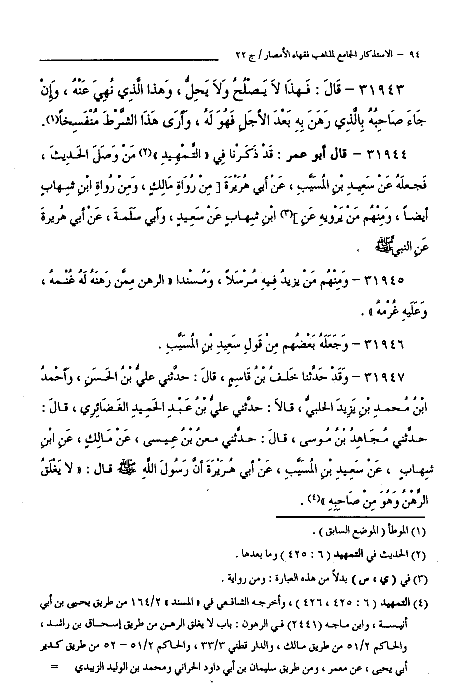 كتاب الاستذكار الجامع لمذاهب فقهاء الأمصار - ت: قلعجي (اسم الجزء: 22)