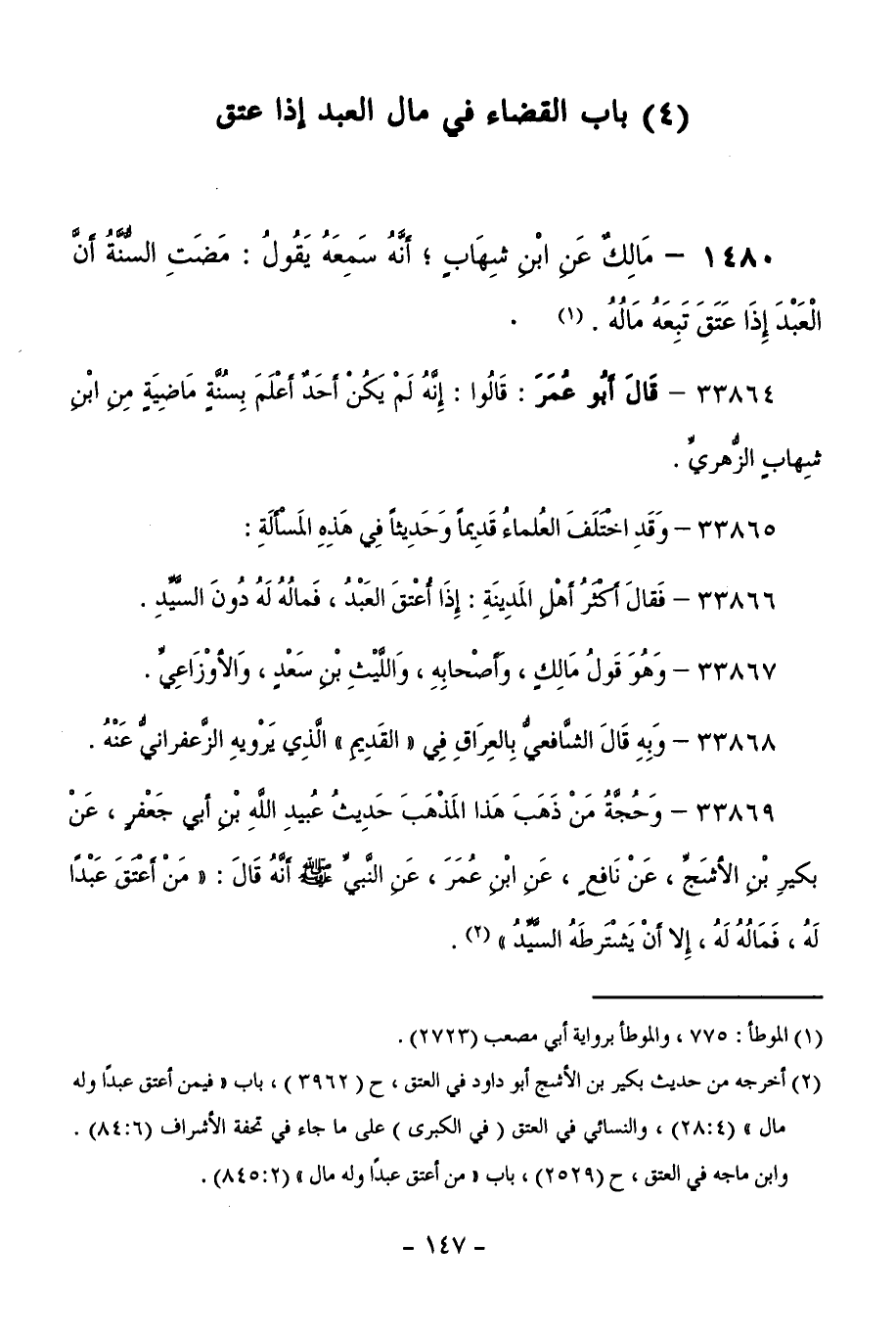 33866 - فَقَالَ أَكْثَرُ أَهْلِ الْمَدِينَةِ: إِذَا أُعْتِقَ الْعَبْدُ، فَمَالُهُ لَهُ دُونَ السَّيِّدِ.