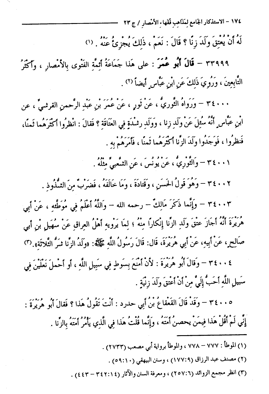 33999 - قَالَ أَبُو عُمَرَ: عَلَى هَذَا جَمَاعَةُ أَئِمَّةِ الْفَتْوَى بِالْأَمْصَارِ، وَأَكْثَرُ التَّابِعِينَ، وَرُوِيَ ذَلِكَ عَنِ ابْنِ عَبَّاسٍ أَيْضًا.