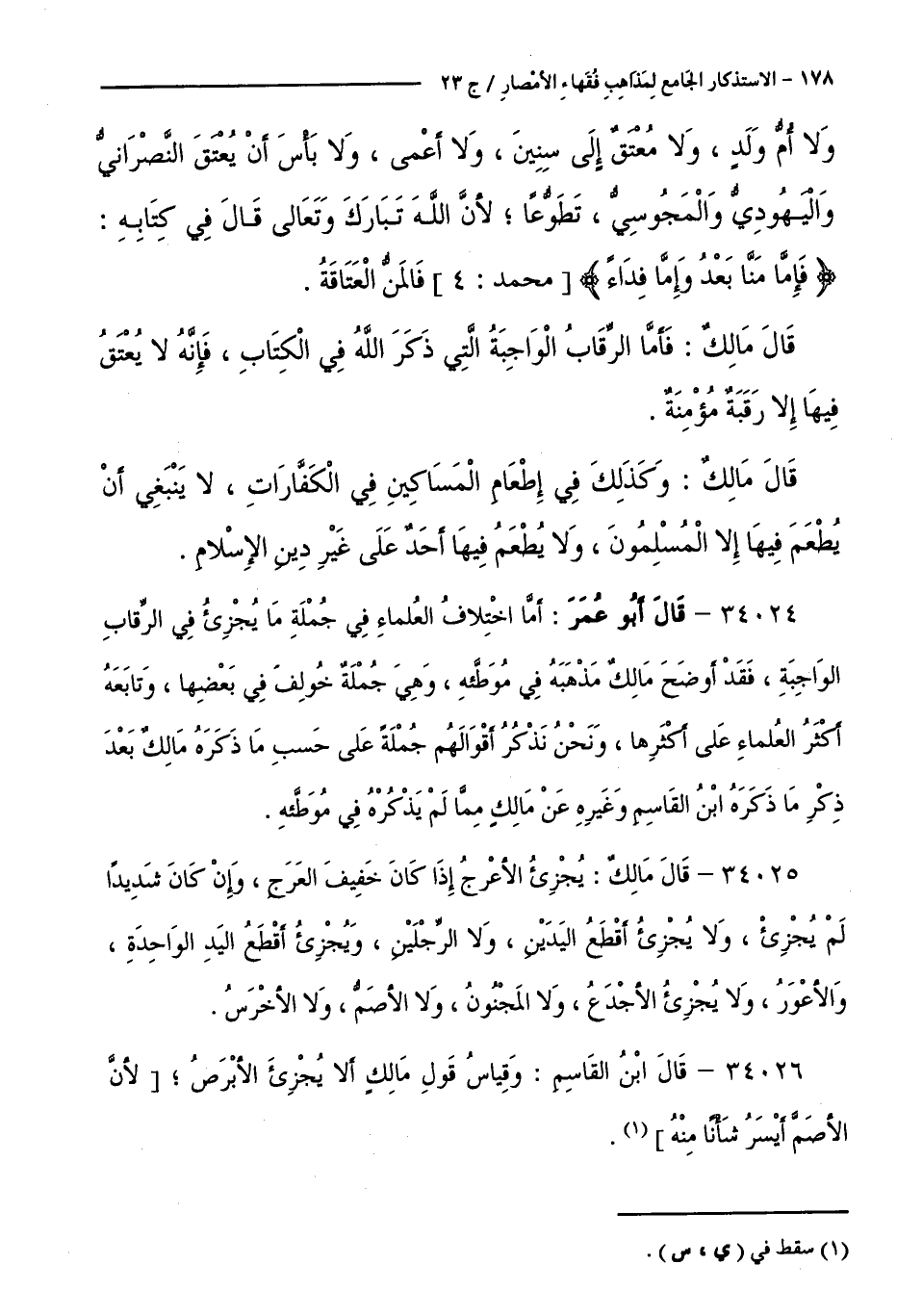 كتاب الاستذكار الجامع لمذاهب فقهاء الأمصار - ت: قلعجي (اسم الجزء: 23)