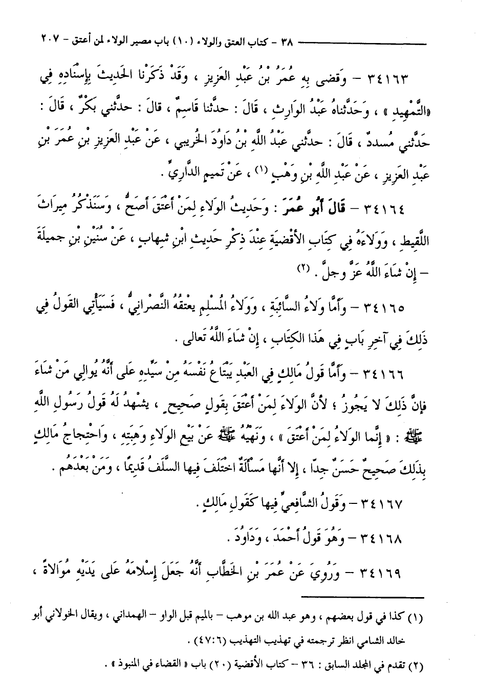 34164 - قَالَ أَبُو عُمَرَ: وَحَدِيثُ " الْوَلَاءُ لِمَنْ أَعْتَقَ " أَصَحُّ، وَسَنَذْكُرُ مِيرَاثَ اللَّقِيطِ، وَوَلَاءَهُ فِي كِتَابِ الْأَقْضِيَةِ عِنْدَ ذِكْرِ حَدِيثِ ابْنِ شِهَابٍ، عَنْ سُنَيْنِ بْنِ جَمِيلَةَ - إِنْ شَاءَ اللَّهُ عَزَّ وَجَلَّ.