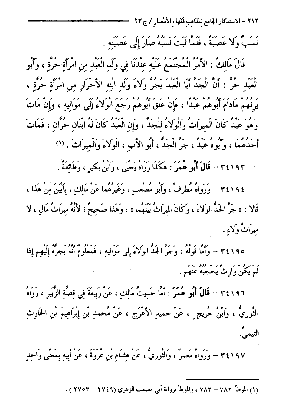34195 - وَأَمَّا قَوْلُهُ: وَجَرَّ الْجَدُّ الْوَلَاءَ إِلَى مَوَالِيهِ، فَمَعْلُومٌ أَنَّهُ يَجُرُّهُ إِلَيْهِمْ إِذَا لَمْ يَكُنْ وَارِثٌ يَحْجُبُهُ عَنْهُمْ.